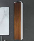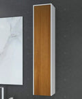 Der WoodOne Hochschrank by Henneke kombiniert die klare Eleganz von DuPont™ Corian® mit der natürlichen Ausstrahlung edler Echtholzfronten. Mit einer Höhe von 1170 mm und schlanken Maßen ist er die ideale Ergänzung für stilvolle Waschtischlösungen – oder als Solitärmöbel ein echter Blickfang.