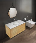 Gefertigt in Glacier White überzeugt die fugenlos verklebte Waschtischplatte durch ihre hygienische, porenlose Oberfläche, die nicht nur besonders pflegeleicht ist, sondern sich bei Bedarf auch fachgerecht reparieren lässt. Kleine Kratzer oder Gebrauchsspuren können so dauerhaft beseitigt werden – ein echter Vorteil für langlebige Badgestaltung.